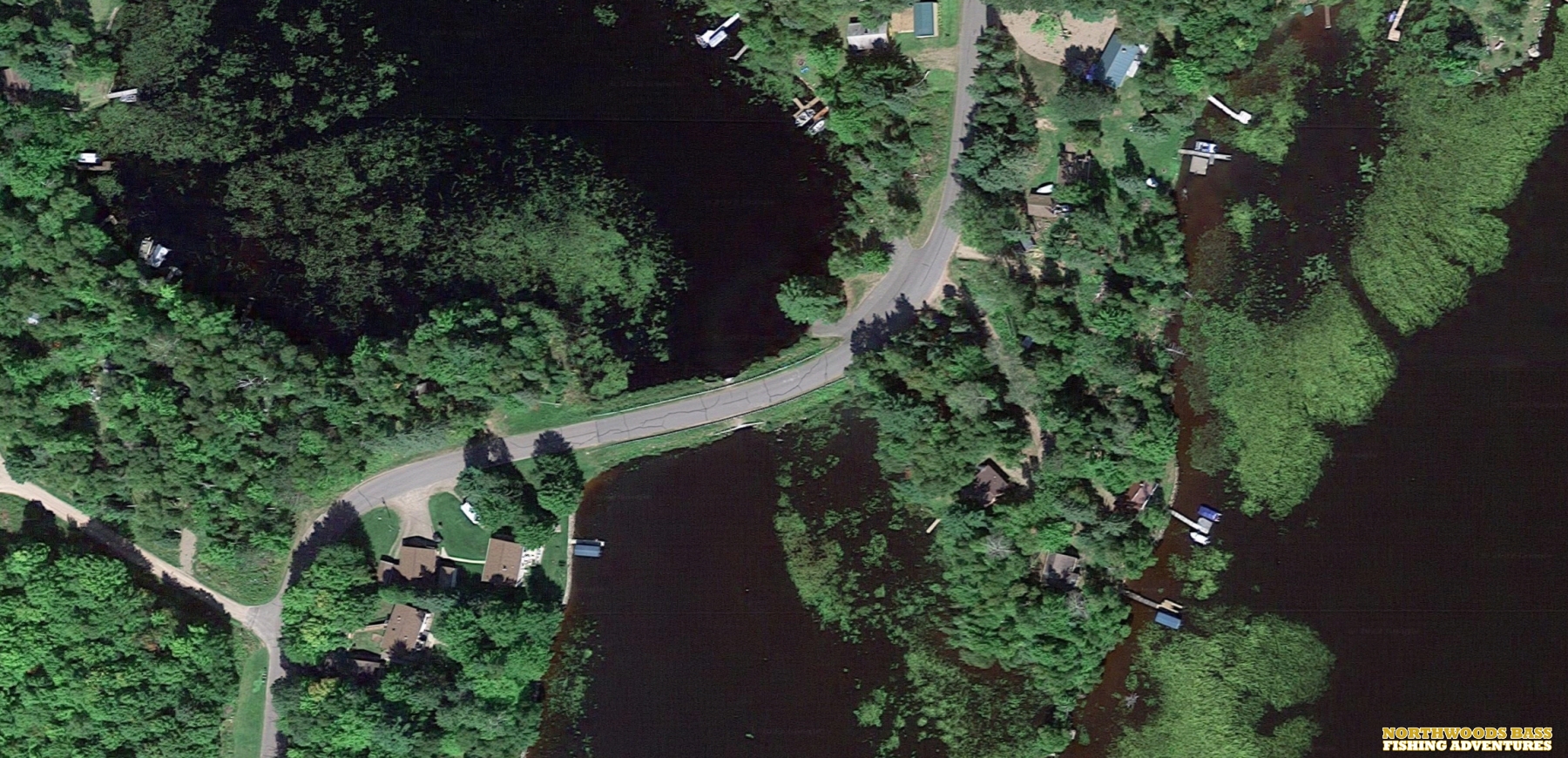 BOTTLENECKS – Common on rivers where its channels and banks narrow and on flowages and shield lakes where a unique configuration of islands and shorelines create the funnel. Baitfish are naturally channeled through these areas in high winds. Gamefish are brought into bottlenecks for the feeding opportunities they create. Casting swimbaits, paddletails, crankbaits, and spinnerbaits is highly effective.