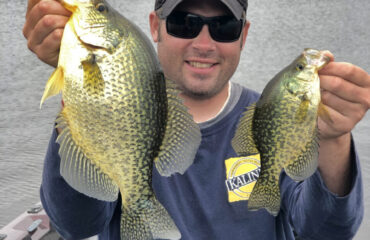 Early in May, and greater emphasized when water temperature is holding in the mid 40’s, seek deeper water first, targeting breaklines at the 10 to 20 ft. level. Look for mid depth structure and underwater holding areas that could be boulders, cribs, wood, and sand bottom. Then as water begins encroaching 50, proceed to staging sites which can be in shallower depths of 5 to 10 ft.