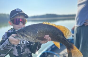 The only thing that caught my attention in that bag was a perch pattern swimbait. I told him bring that 6-inch perch pattern swimbait, as this fishery was a perch forage mecca.
