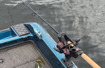 Taking shallow water swimbait fishing to a new level, the Berkley Powerbait Cull Shad Swimbait combines big profile drawing power with Berkley’s proprietary Honeycomb Technology to increase durability without sacrificing action. Featuring a pre-rigged hassle-free harness and hook retention clip to keep the treble hook secured to the belly, the body and keeling harness design prevent blowouts and keep the Cull Shad running true even at fast retrieve speeds. Due to watching Larry blow a few hook sets, I would suggest modifying the hook to a 2/0 treble. Sharpening hook wouldn’t hurt either.