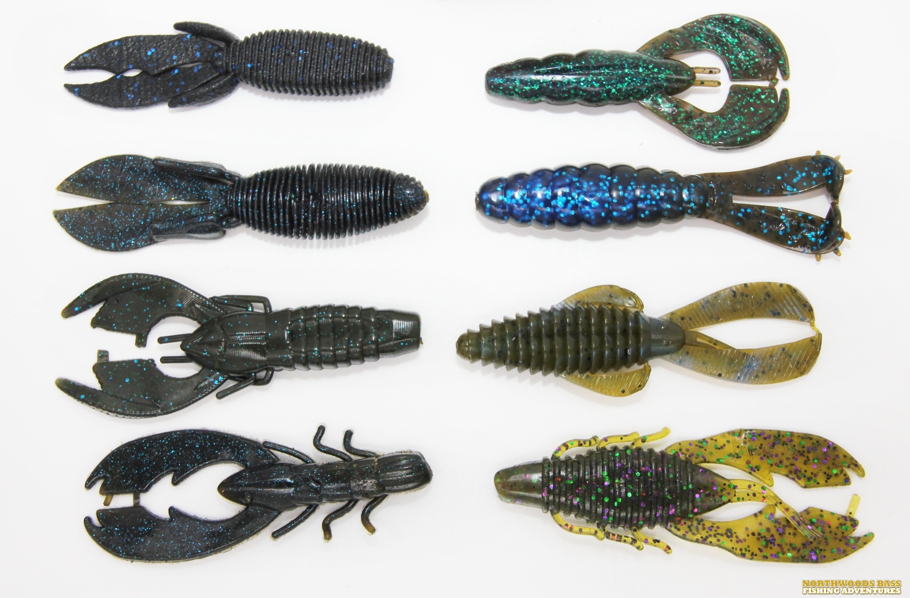 Several creature-styled and flipping-inspired plastics will work. My favorites for punching are Z-Man Hella Craws, Missile Baits D-Bombs in black neon and super bug, 4-inch Bizz Baits Bizz Bugs in bama bug, Strike King Rage Bugs, and 4.25 YUM Wooly Bugs. Rig each to a Trokar TK133 Pro-V Flipping hook. Dark, well-contrasting colors are recommended.