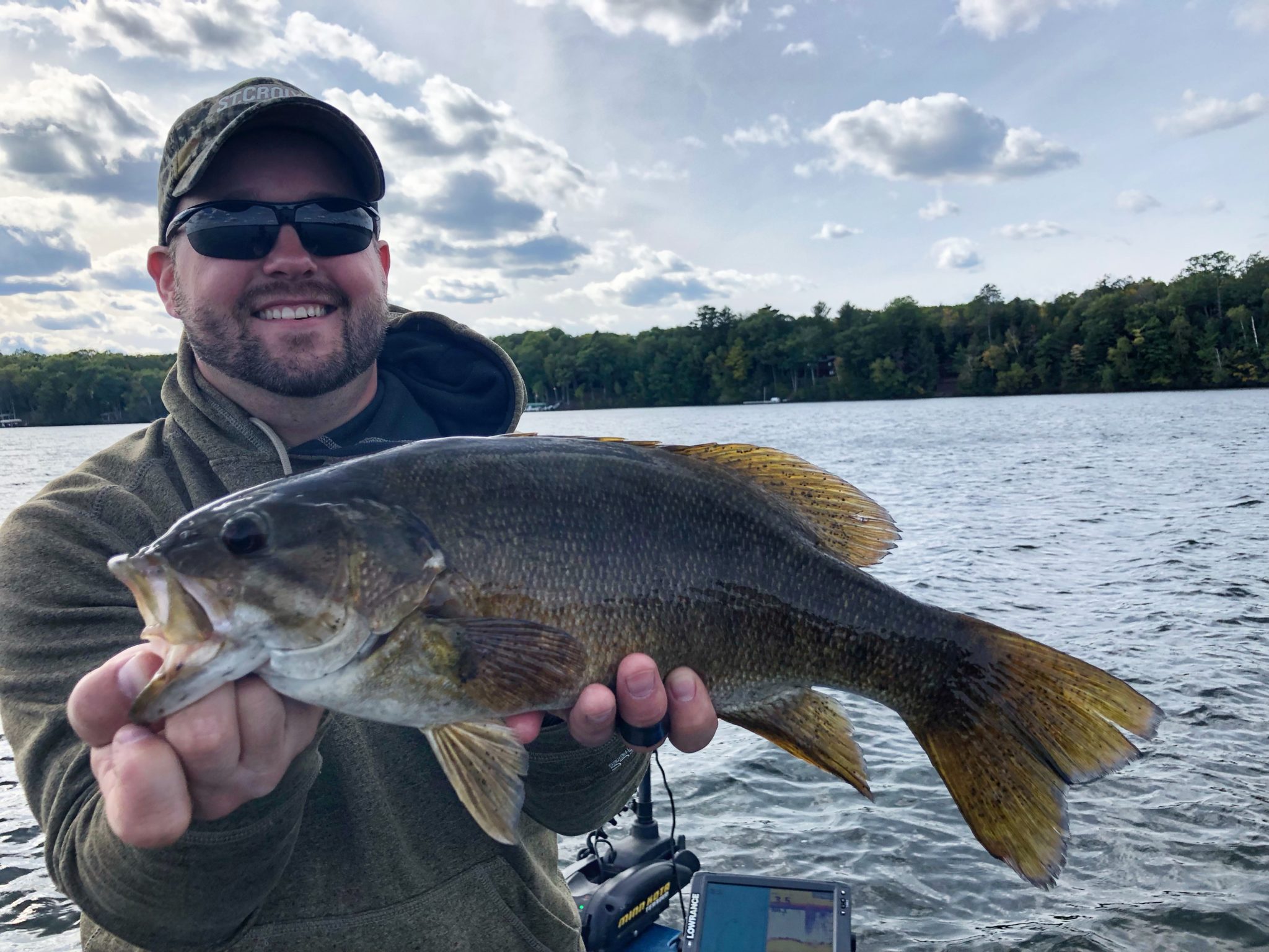 When smallmouth return shallow in September, it’s often for water temperature comfort, and feeding on forage abundance. The potential for high numbers and catch rates, and trophy smallmouth is inevitable in what could end up being the biggest fish and best trips of the year. The author with a monster he caught from late September, 2019.