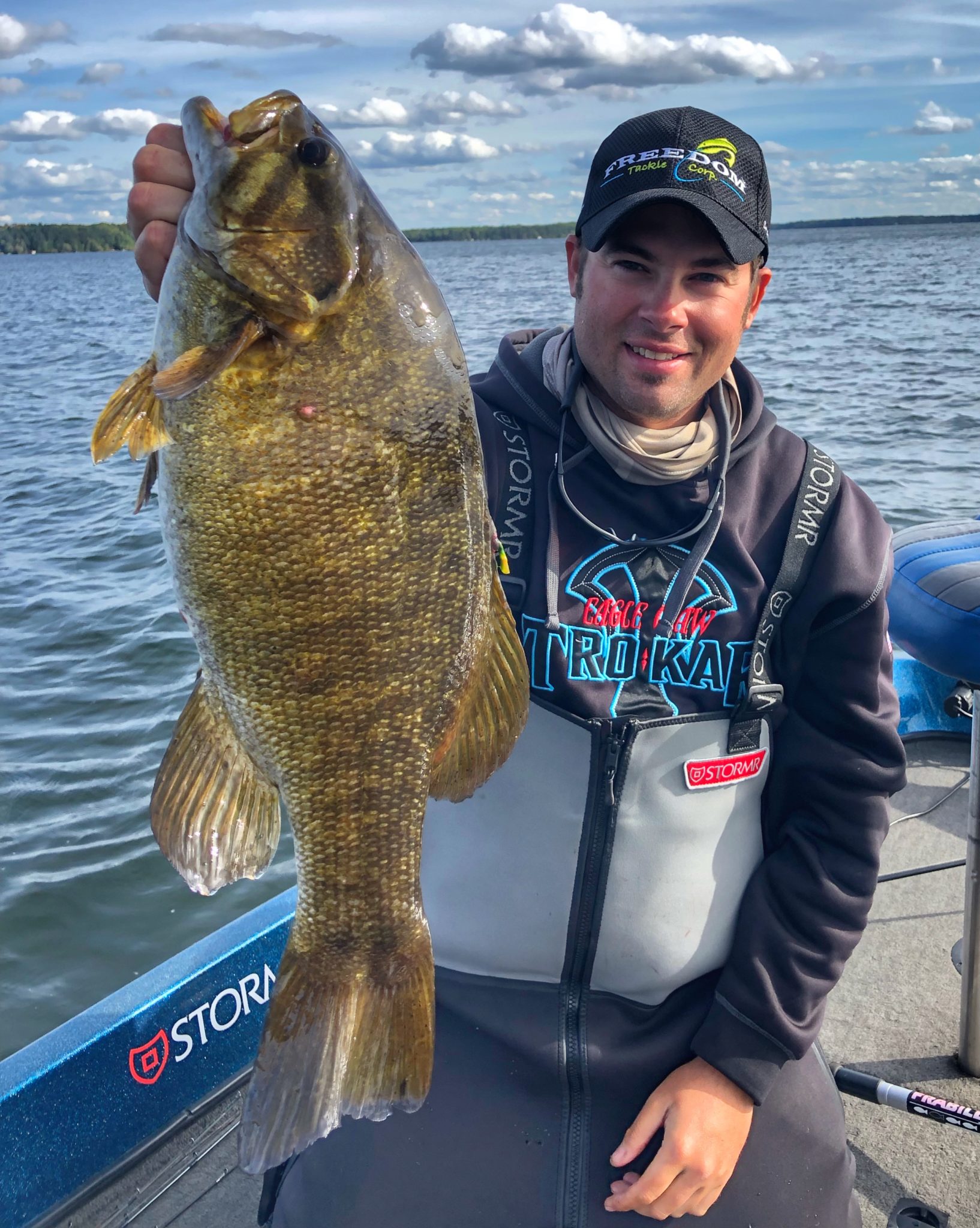 During the hot swimbait bite of September 2019 with customers, the Kalin’s Sizmic Shad in Arkansas Shad pattern accounted for several feeding frenzy smallmouth. Pictured is guide customer, Joe Novak.