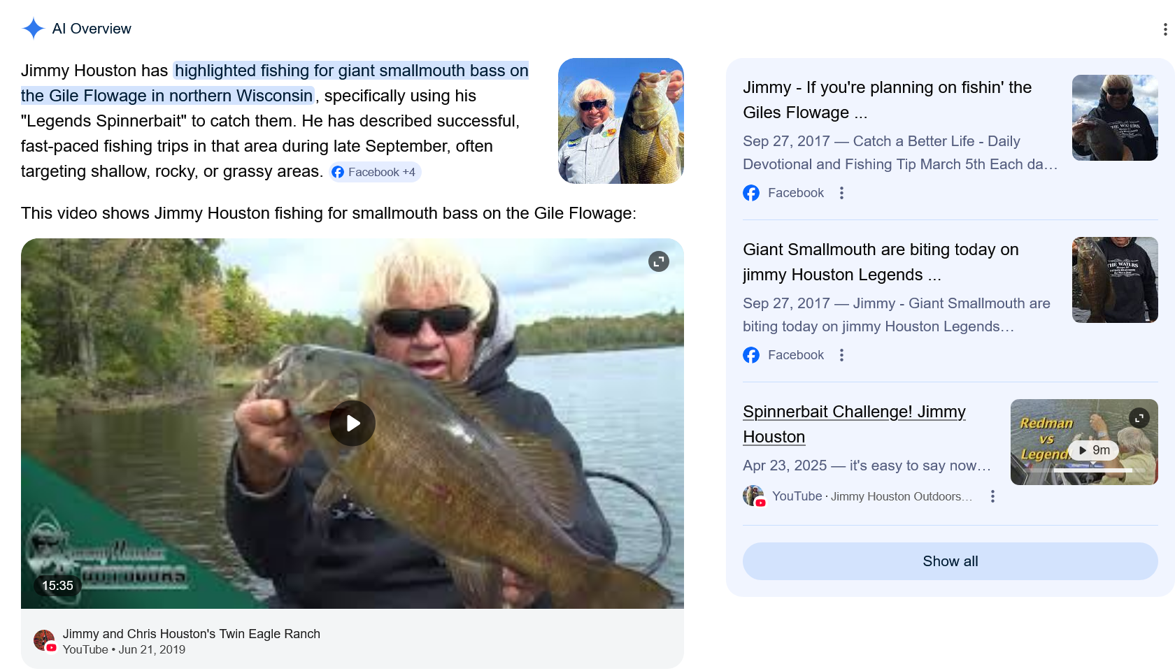 For example, Jimmy Houston’s visit to Minocqua in September 2017 was not warmly received by locals once the word got out and the episodes aired. During that week long visit, local waters were fished and filmed. Then he headed further north up to Hurley. Shortly after airing his episodes on the Gile Flowage and showcasing every known landmark of the lake, I got calls and requests from people across the country to take them fishing to it the next season in 2018. Perfect example of fishery exploitation here with the Gile. Pre-Jimmy, 100 fish days were the norm out there. Post-Jimmy, you’d need a full day in June to accumulate just 30-40 fish. That place never returned to the same form again, and people aren’t going there anymore.