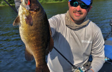 Calm, humid conditions are most inviting for schools, promoting high surface activity. Pay attention for surface activity and feeding, and fish vigilantly. Wherever there’s surface activity happening you’ve got to get the boat over to that region to fish it. Surface explosions are often indicative of feeding largemouths.