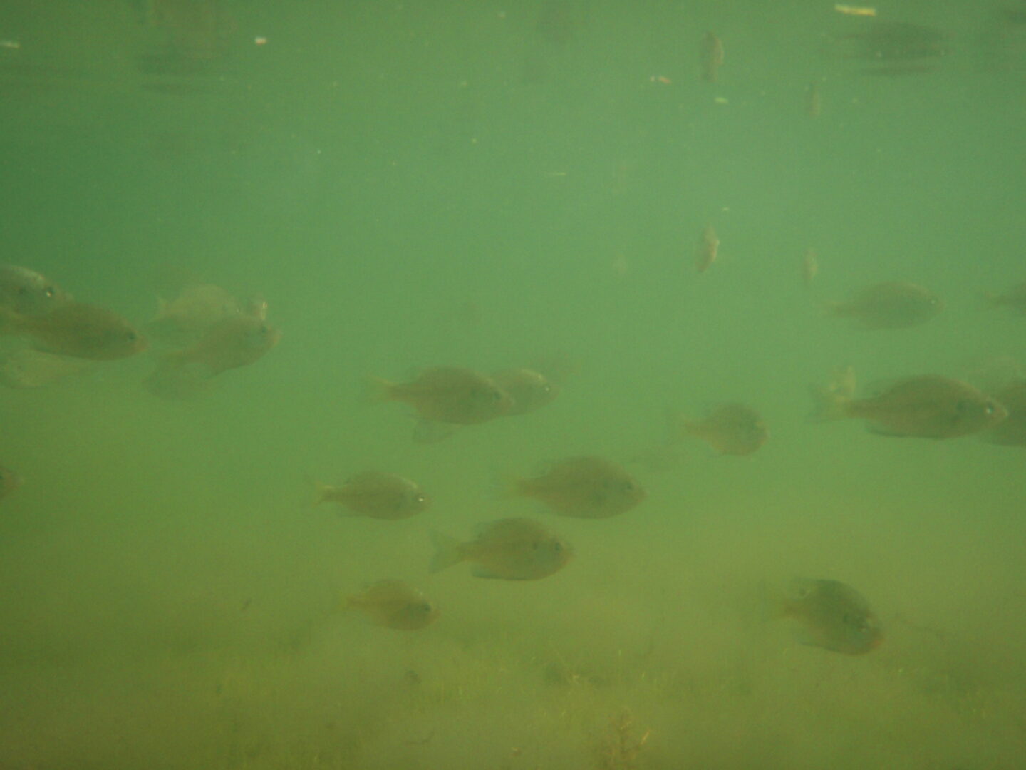 Juvenile bluegills are known for their heavy schooling. Summer largemouth locations often revolve around bluegill schools.